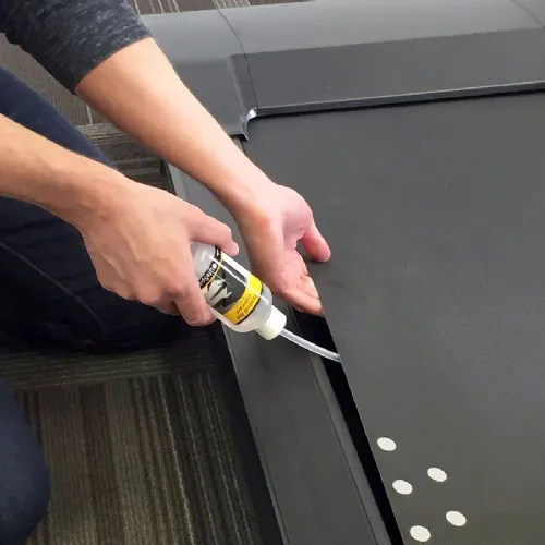 Note: With a folding treadmill, we recommend that it is not folded immediately after applying silicon lubricant. The treadmill will need to be used for at least 15 to 20 minutes to ensure the silicon lubricant is evenly spread and fully absorbed into the running belt before folding.